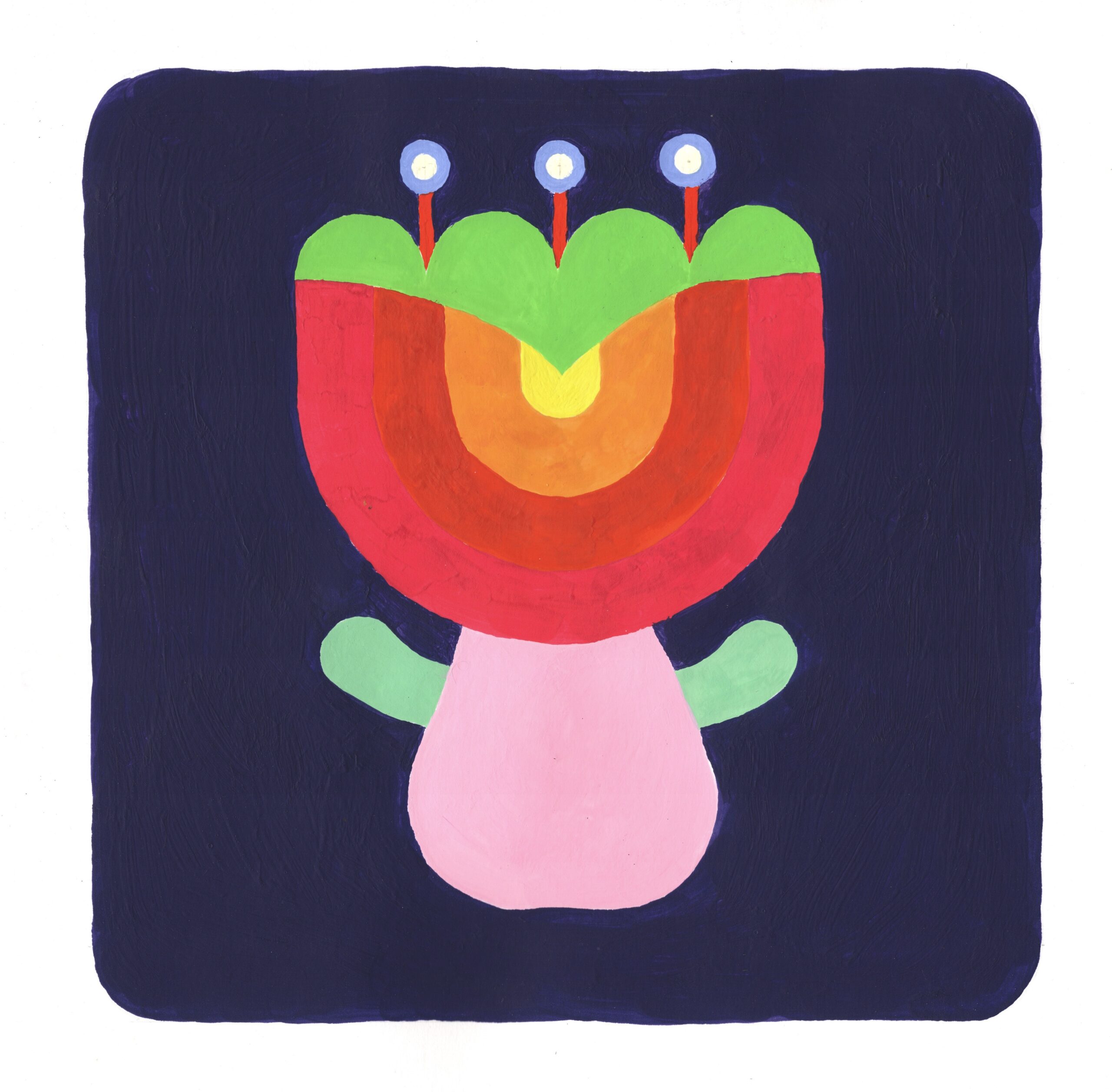 La fleur devient ici un motif central, décliné en peinture et en céramique. Elle sert de terrain de jeu graphique : contours affirmés, couleurs franches, formes simples et expressives.