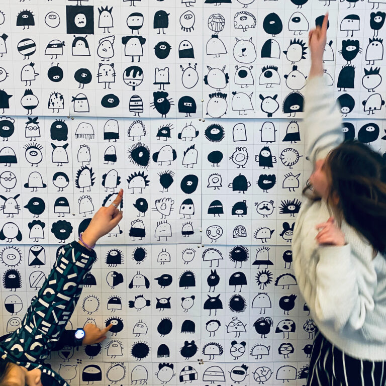 Après avoir parcouru l’exposition et observé ces drôles d’habitant·es, les enfants inventeront à leur tour leurs propres personnages pour repartirent avec un Cherch’ et Trouv’ unique, inspiré de l’univers de l’artiste.
